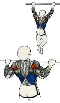 En position de départ vous êtes accroché à la barre, les bras tendus avec une prise plus grande que la largeur d'épaules et les pieds croisés ou parallèles. Monter en amenant le menton au niveau de la barre et descendre en gardant la tension, sans à coup. Vous pouvez marquer une pause au point le plus haut de l'exercice pour bien contracter les dorsaux.