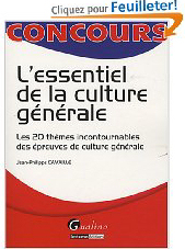 Une épreuve de culture générale est composée de 20 questions à choix multiples portant notamment sur la connaissance des institutions, la géographie et l'histoire de France, le sport, le cinéma.. Il est bon de revoir rapidement ses classiques scolaires ou de s'entraîner sur des Q.C.M.s comme ceux qui suivent. Ils reprennent tous les thèmes de façon mélangée.