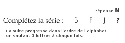 L'épreuve des suites numériques et alphanumériques est assez subtile car elle repose essentiellement sur l'observation et la déduction. Le raisonnement s'oriente sur des associations 1=a; 2=b et ainsi de suite pour les suites alphabétique. Ces dernières sont souvent mélangées avec des suites numériques qui s'interposent. Astuce: Lorsque plusieurs propositions vous sont faites, ne regardez les différentes propositions qu'après avoir compris la logique de la suite de figure, sinon vous perdrez du temps. Prenez une feuille de papier et dessinez ce qui vous semble être le résultat et allez ensuite le chercher dans les réponses proposées. Si vous êtes très doué, vous pouvez le faire de tête. Nous vous livrons une serie de 4 Q.C.M. de 20 questions reprennant tous les exemples qui peuvent tomber dans ce type de test. Toutefois nous avons fait le choix de vous donner la correction sans vous expliquer le pourquoi. Pour ce faire, rendez vous dans la rubrique documentation où vous trouverez des livres spécialisés avec l'ensemble des exercices et leur correction expliquée. Nous avons tout de même résumé sous forme d'exemples concrets, les cas de figure les plus courants de ce type d'épreuve. |